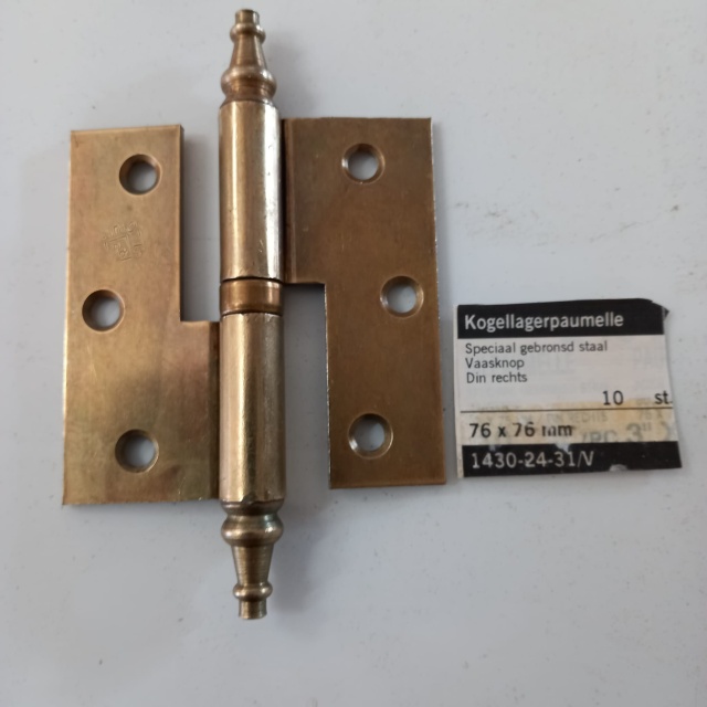 KOGELLAGER PAUMELLE SCHARNIER 76/76MM RECHTEHOEK GEBRONSD STAAL VAASKNOP RECHTS.