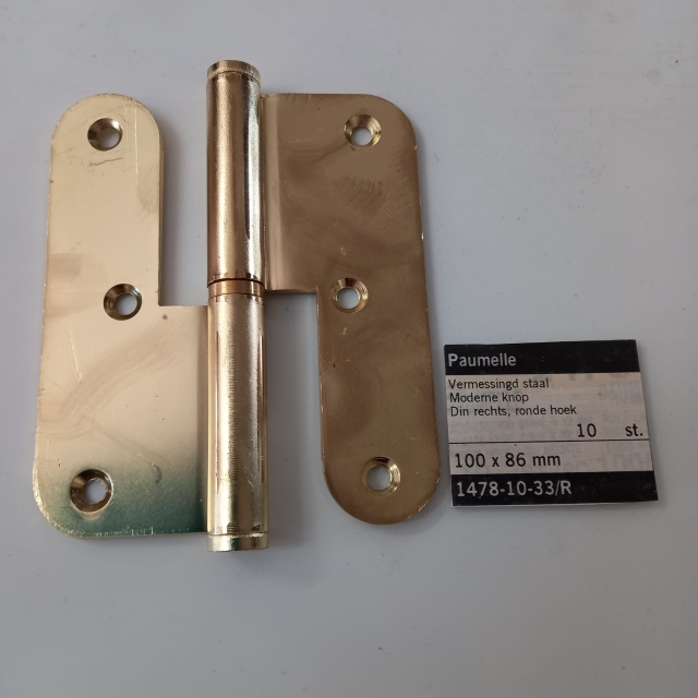 PAUMELLE SCHARNIER 100/86MM RONDE HOEK VERMESSINGD STAAL RECHTS.