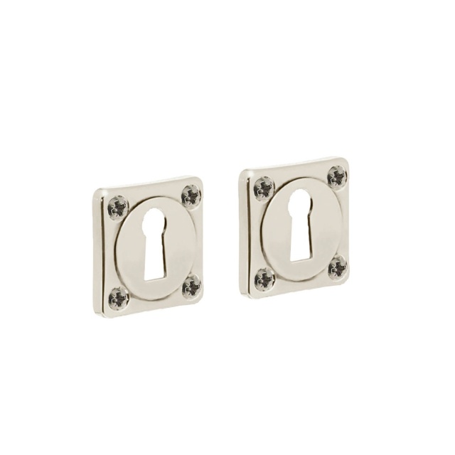- Dit vierkante rozet met sleutelgat is uitgevoerd in nikkel en is naderhand gepolijst, waardoor het een glanzende uitstraling krijgt.